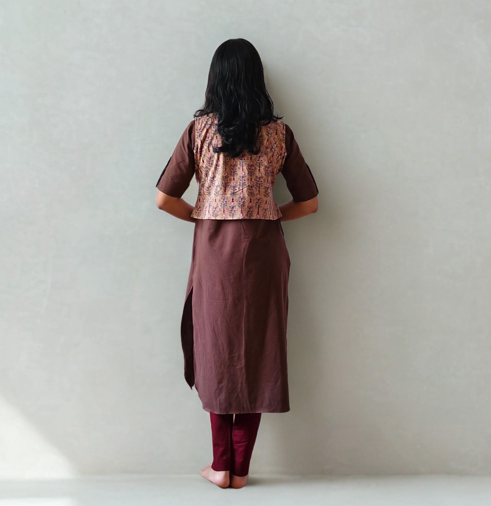 Add a touch of artisanal charm to your look with this sleeveless short jacket. Handblock-printed in delicate floral patterns, it’s the perfect layering piece to elevate a simple kurti, dress, or even casual tops. Lightweight and versatile, it brings tradition and trend together effortlessly.